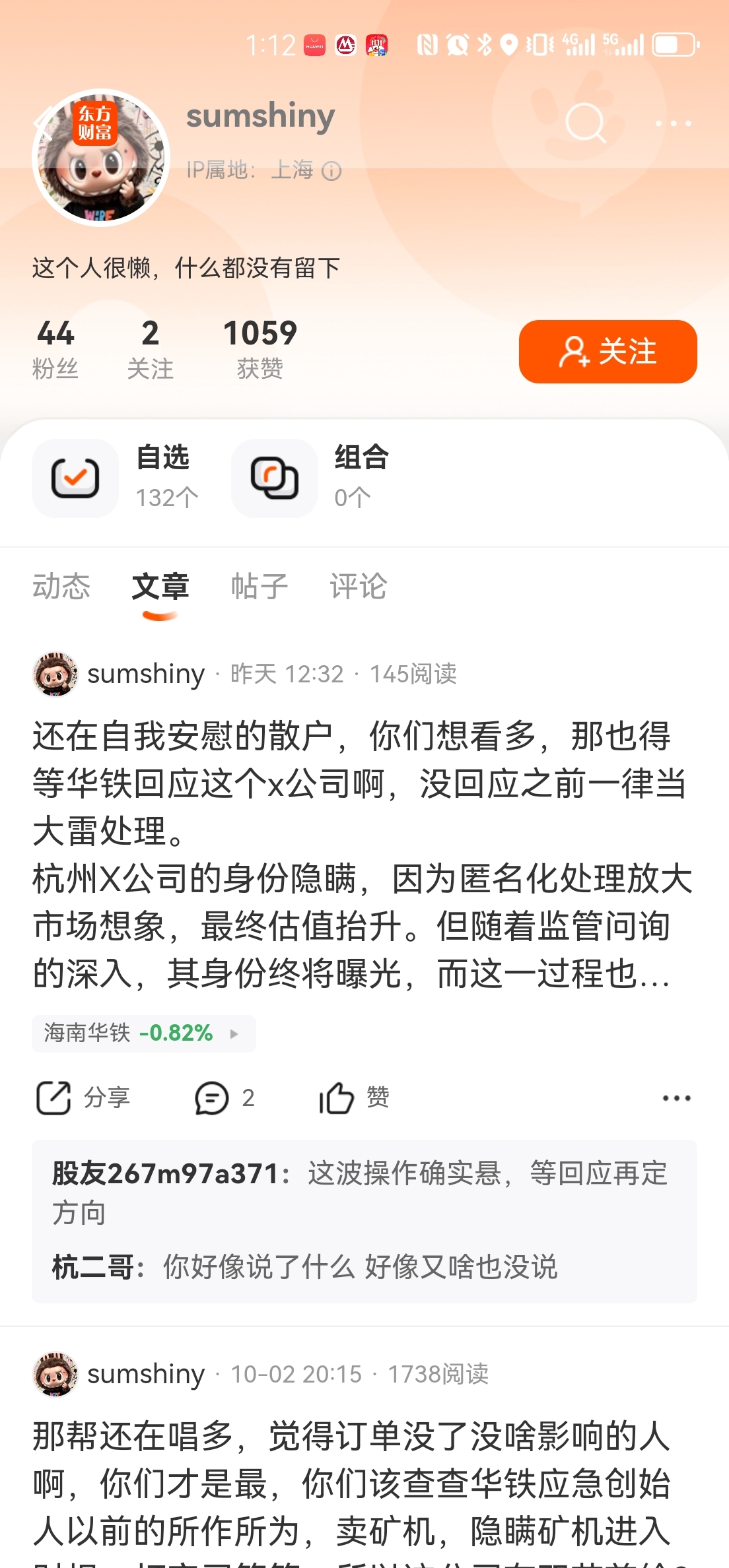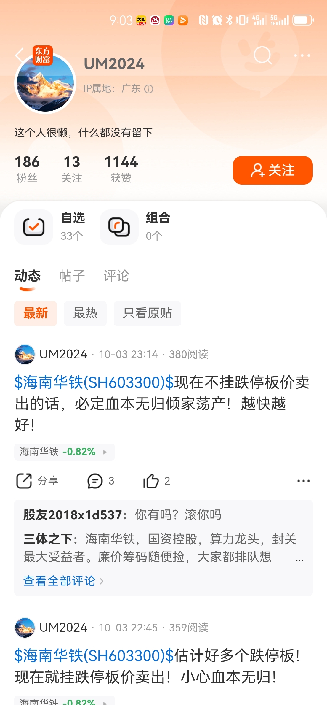 $海南华铁(SH603300)$ 这几个人一股没有吧?天天唱空,制造恐慌居心何在?大家都截图保存。作为华铁的散户遇到这种利空已经很倒霉了,这群人还在恶意唱空,诋毁!良心何在?积点口德吧!