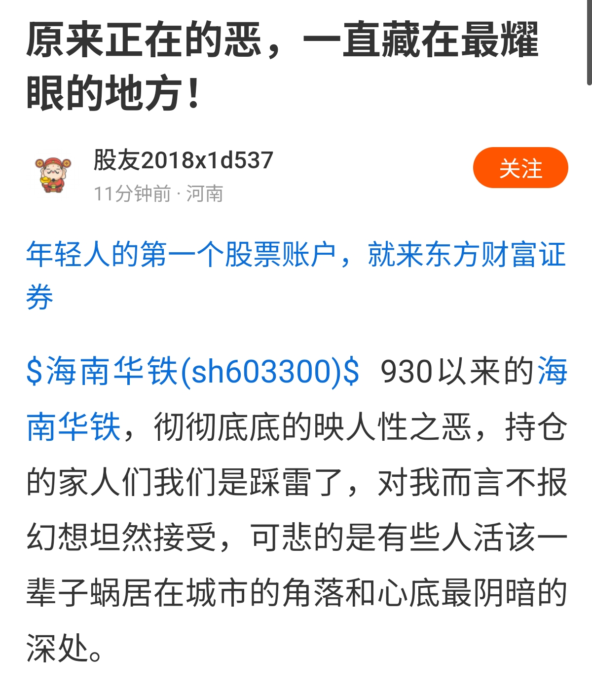 温馨提示: 1.根据《证券法》规定,禁止编造、传播虚假信息或者误导性信息,扰乱证券市场;2.用户在本社区发表的所有资料、言论等仅代表个人观点,与本网站立场无关,不对您构成任何投资建议。用户应基于自己的独立判断,自行决定证券投资并承担相应风险。《东方财富社区管理规定》