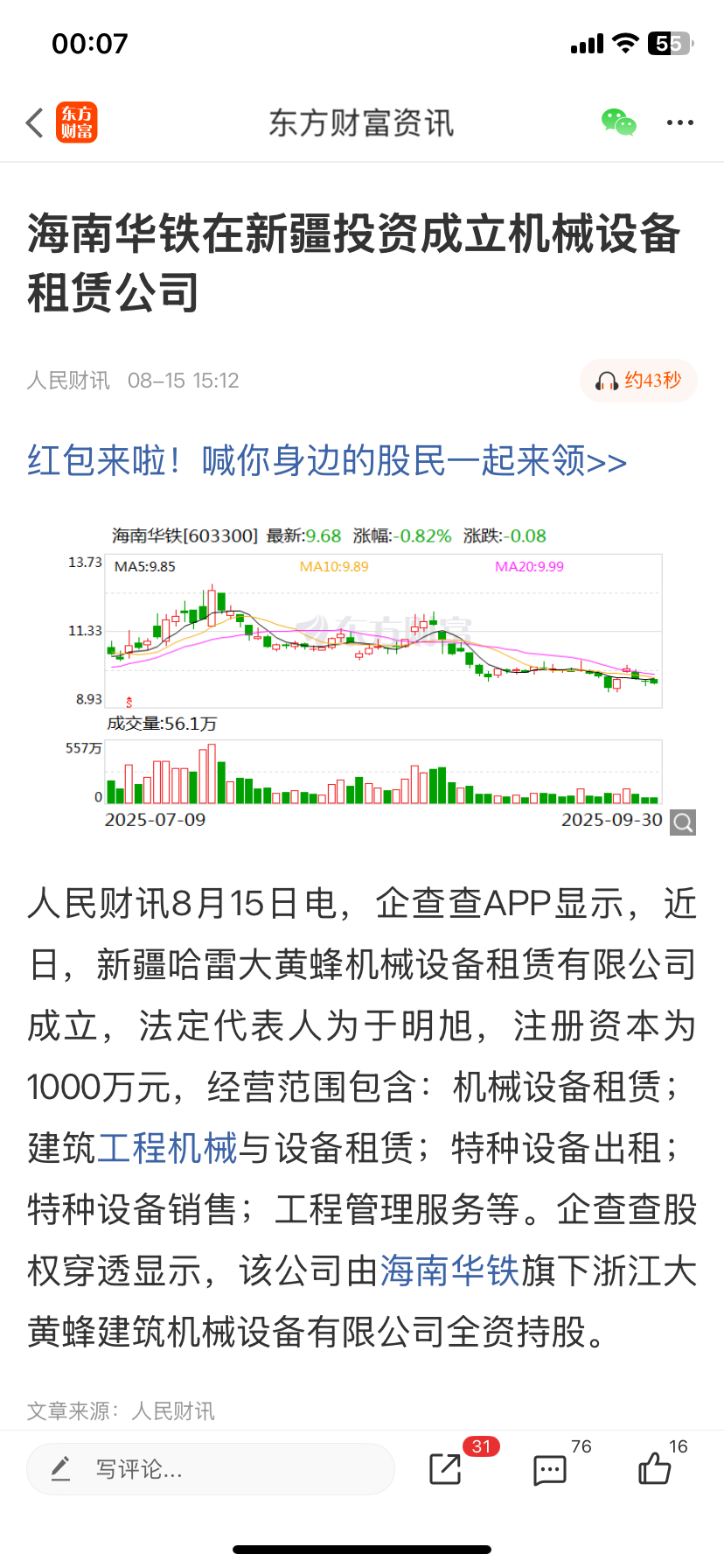 $海南华铁(SH603300)$ 啥都有你份,不省油的灯