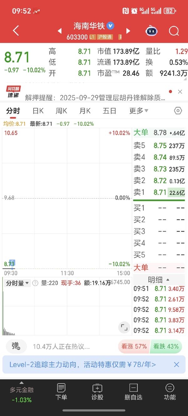 $海南华铁(SH603300)$ 昨晚挂的居然出来了,太幸运了