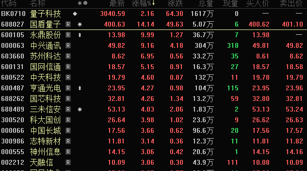 今天早盘,包括核聚变、超导、量子科技等相关题材涨幅居前。另外,9 月16 日,英国和美国就《科技繁荣协议》达成一致。长江证券表示,此次英美就《科技繁荣协议》达成一致,有望推动量子科技在这一国家级的行动计划下加速发展,从而带动包括基础光电元器件、量子通信核心元器件、量子通信传输干线、量子系统平台,以及应用层的量子科技全产业链发展。长江证券建议关注量子科技全产业链,重点关注量子计算及量子通信龙头企业。