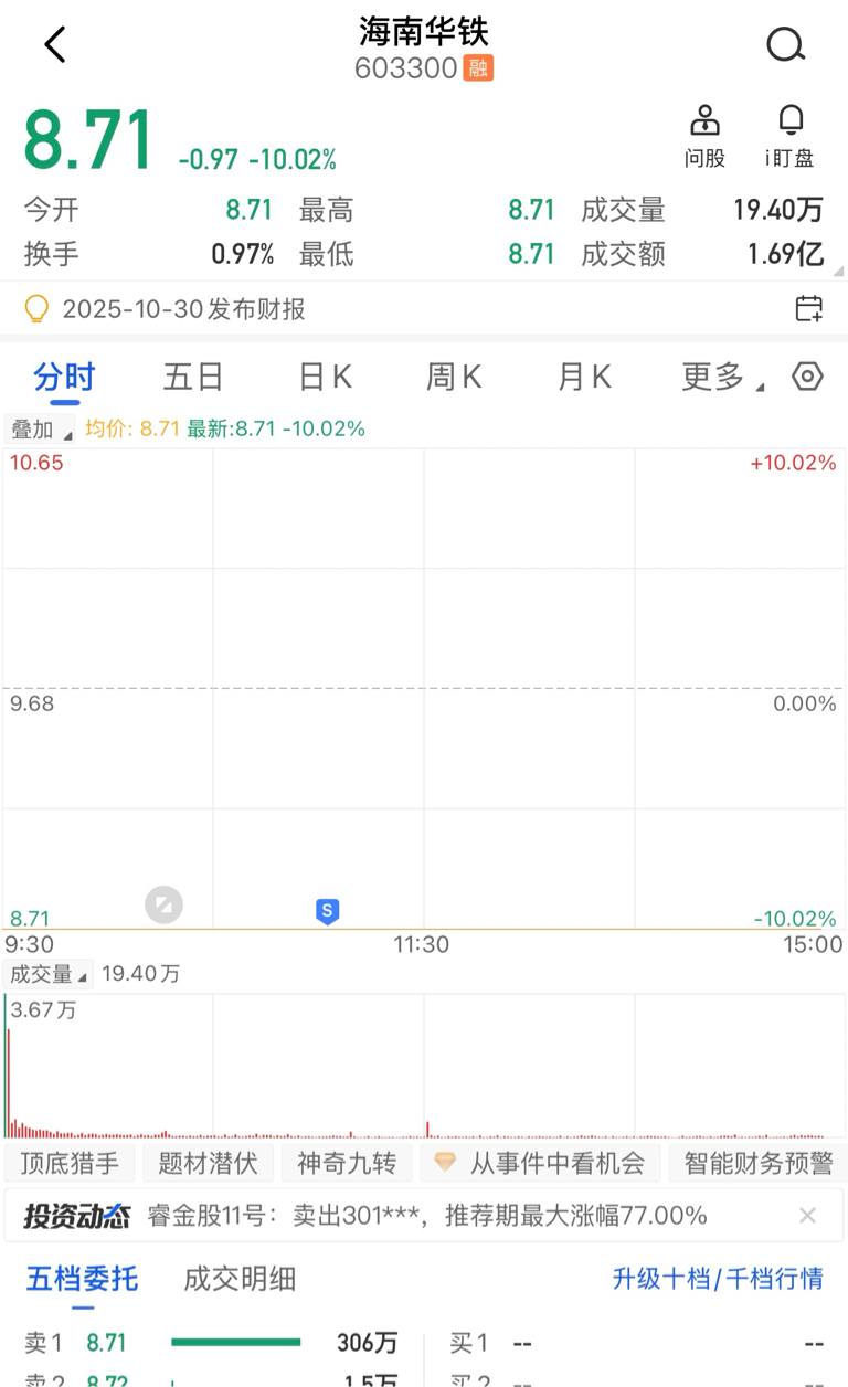 $海南华铁(SH603300)$ 今天能出来比吃个涨停还开心