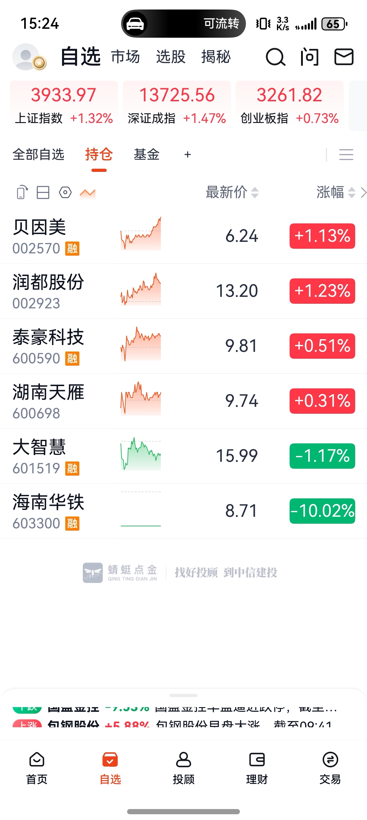 $海南华铁(SH603300)$ 今天大盘涨上天了,全靠华铁绿油油。。