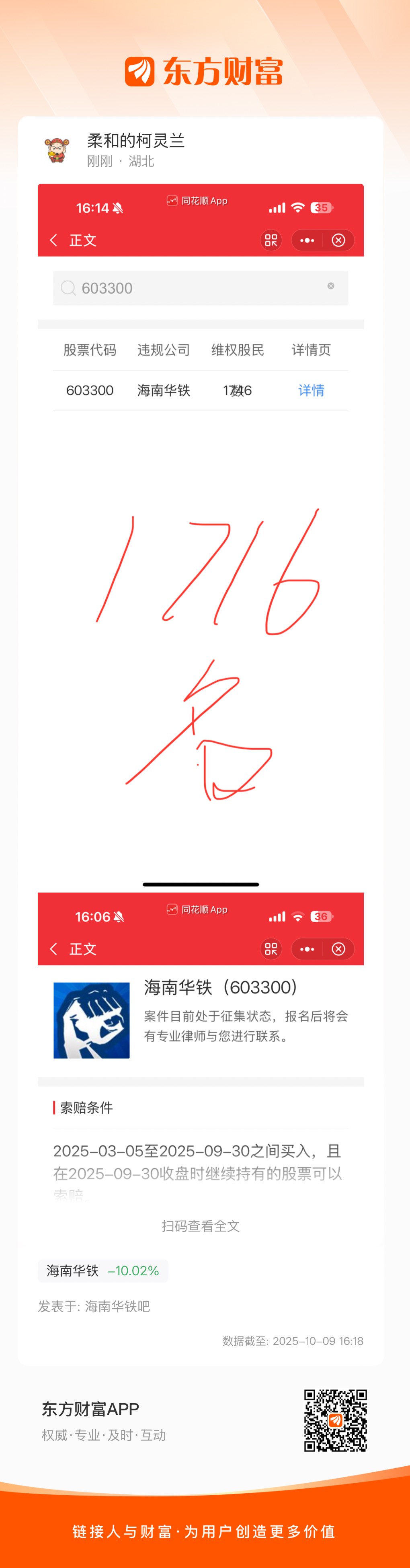 $海南华铁(SH603300)$  已有1716名受害股东登记索赔