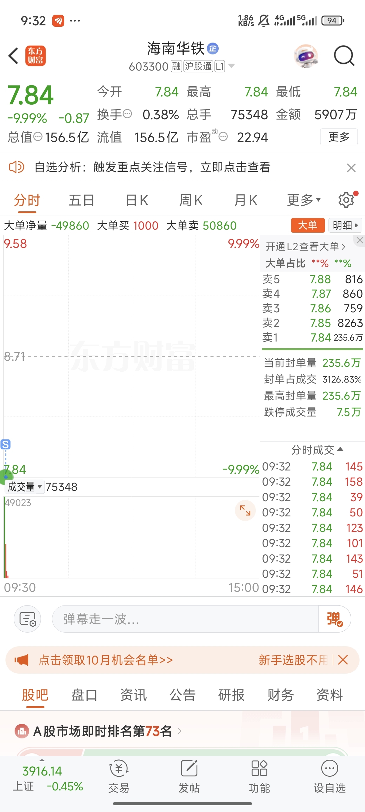 $海南华铁(SH603300)$ 各位今天可能会开板,因为我已经逃出来了。
