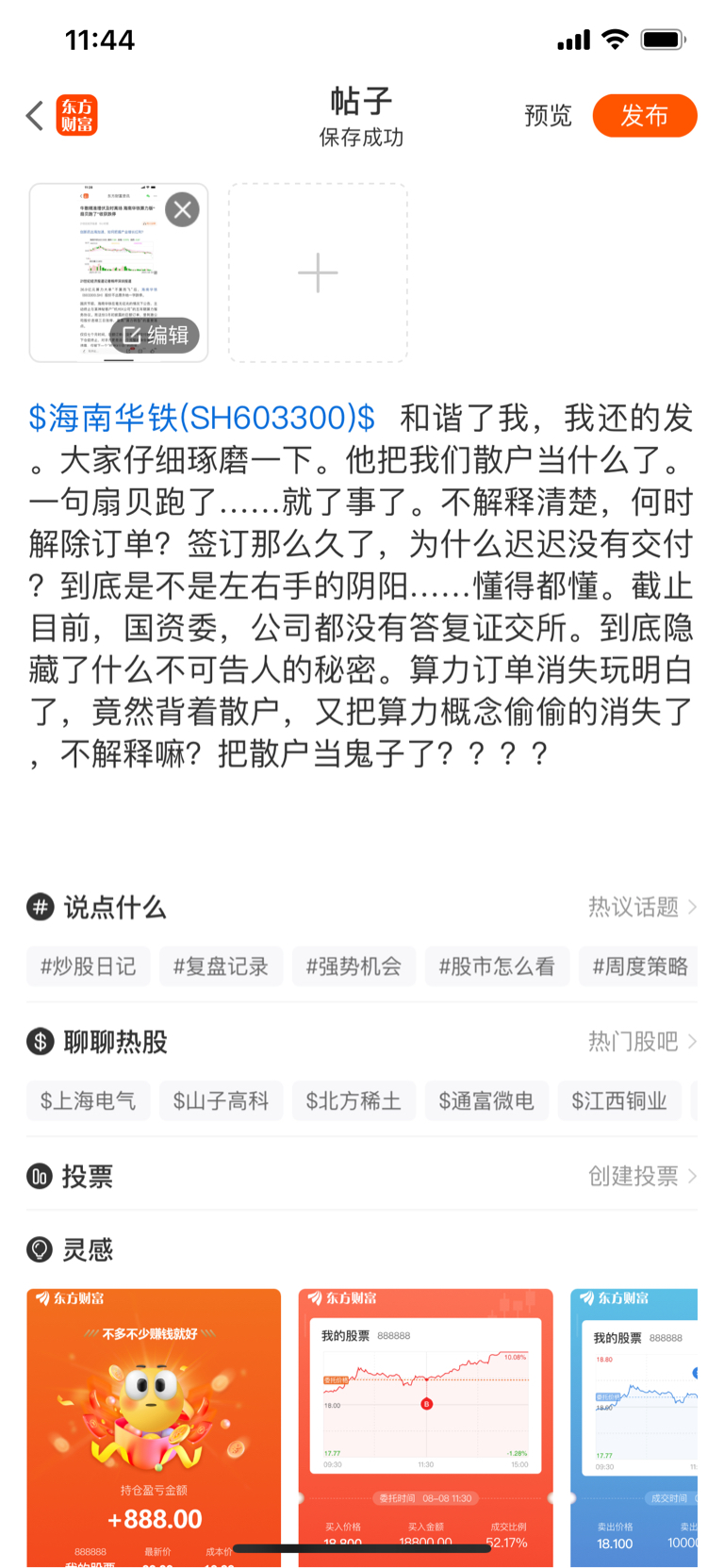 温馨提示: 1.根据《证券法》规定,禁止编造、传播虚假信息或者误导性信息,扰乱证券市场;2.用户在本社区发表的所有资料、言论等仅代表个人观点,与本网站立场无关,不对您构成任何投资建议。用户应基于自己的独立判断,自行决定证券投资并承担相应风险。《东方财富社区管理规定》