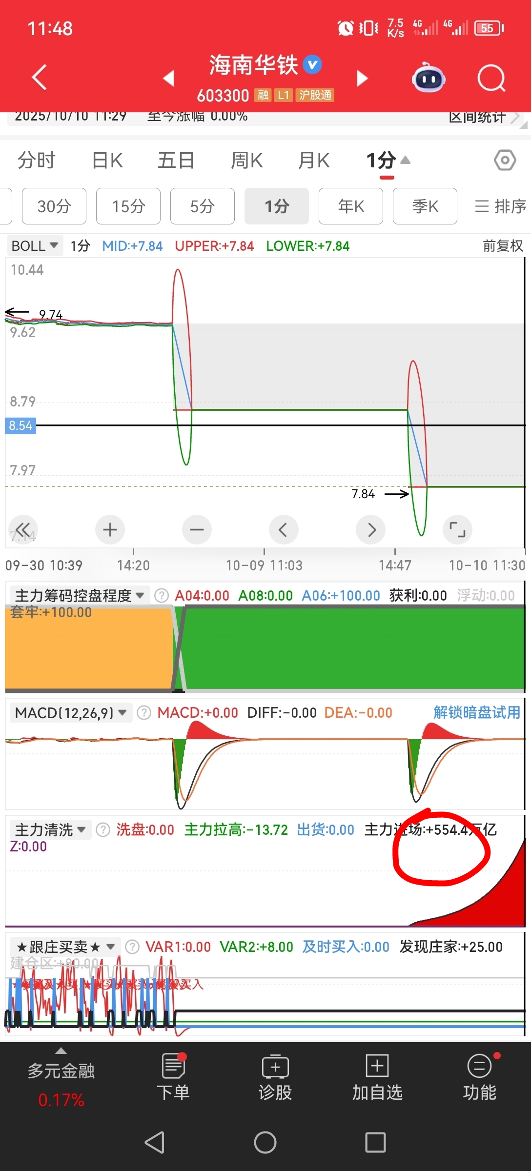 $海南华铁(SH603300)$ 日/120/60都在底部,不过还未出现买入拉升信号,1分时有些假,快到底了