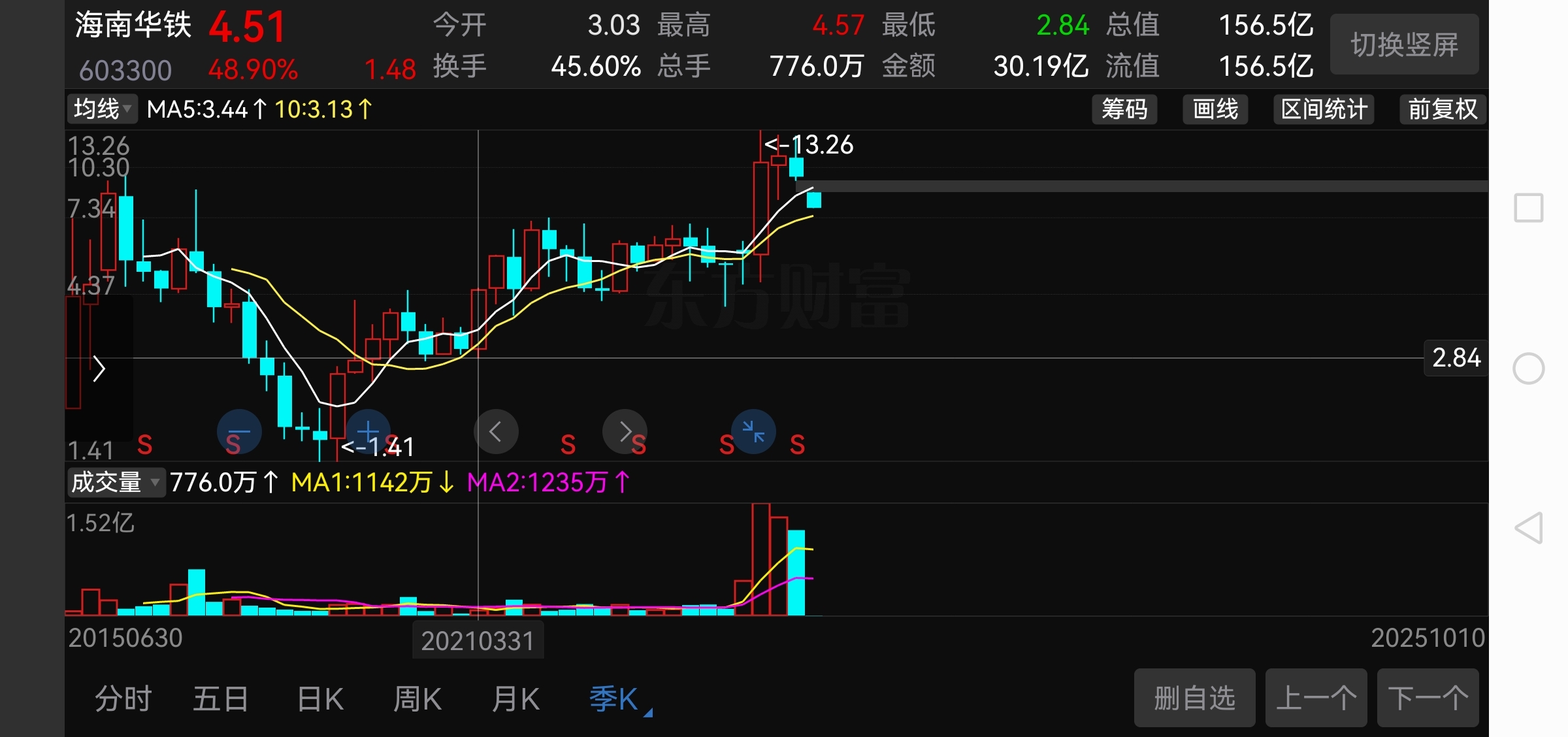 不要怕,最多再跌五块。不就是跳空阴吗!7.84-2.84=5。