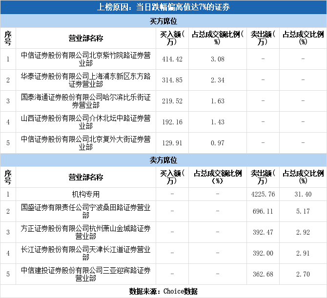 机构现身龙虎榜,海南华铁跌停(10-10)