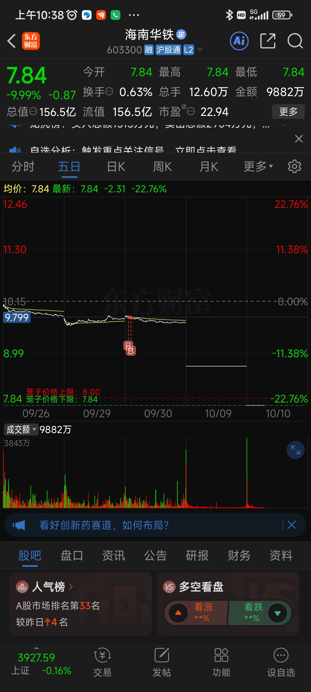 $海南华铁(SH603300)$ 我帮我一个朋友问一下,还有救吗,大家不要误会,那个人不是我