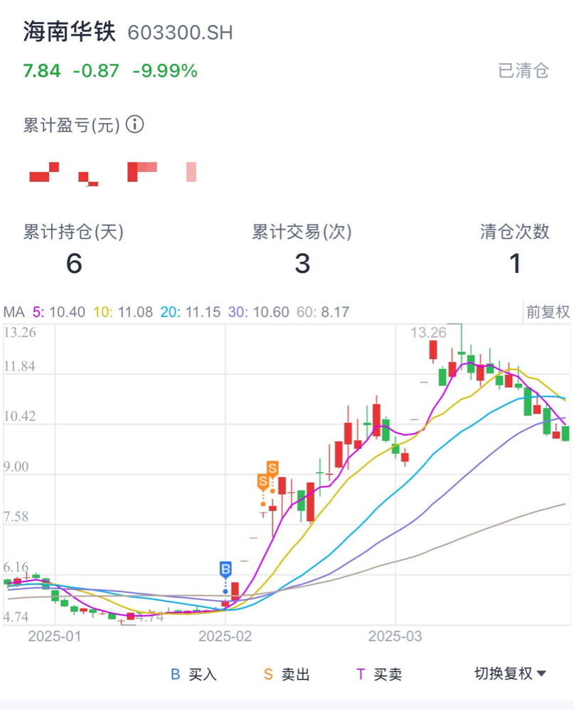 $海南华铁(SH603300)$ 终于跌到我的卖出价格以下了,卖飞了难受了半年