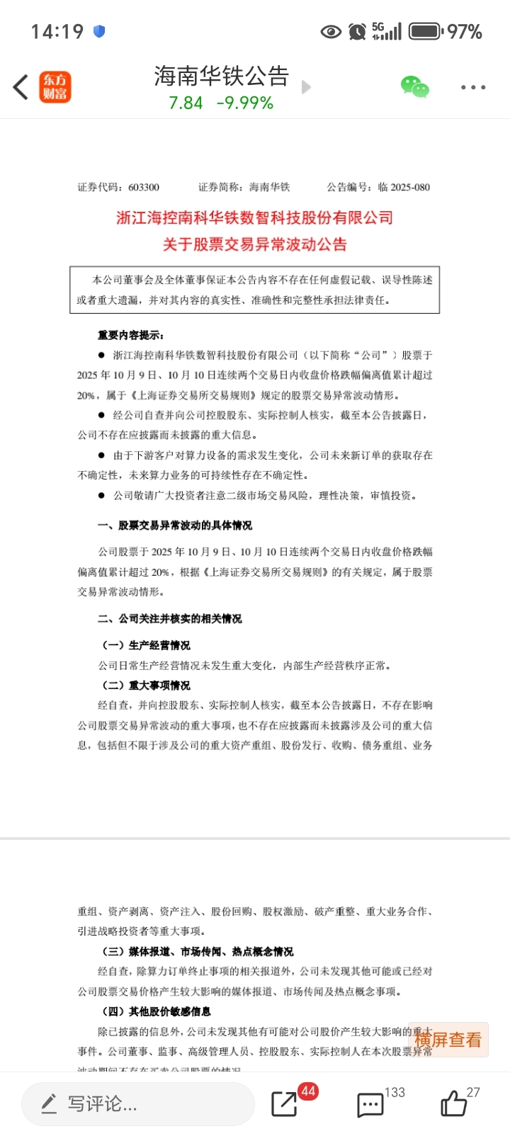 $海南华铁(SH603300)$ $*ST华铁(SZ000976)$ 怪不得被算力板块给踢出去了。原来全是在讲故事啊。还没被村里盯上的时候,什么热点都有,什么热点都蹭。现在被村里点名了,马上发公告洗清自己和算力没多大关系。就这种公司居然还有人认为是好标,还要来抄底,你们下个星期慢慢的抄底去吧。