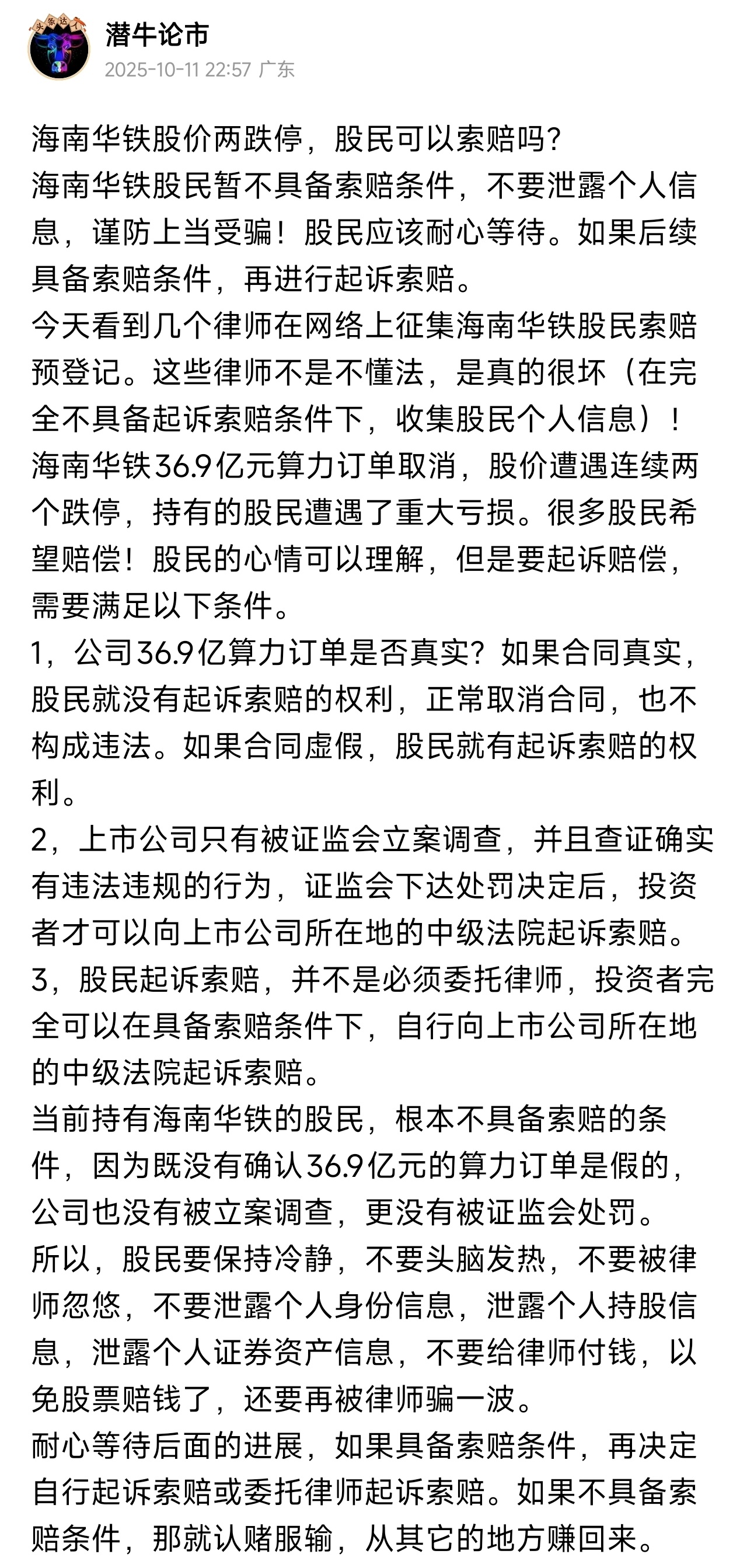 $海南华铁(SH603300)$ 头条!亏损的股民要冷静,不要上当受骗!