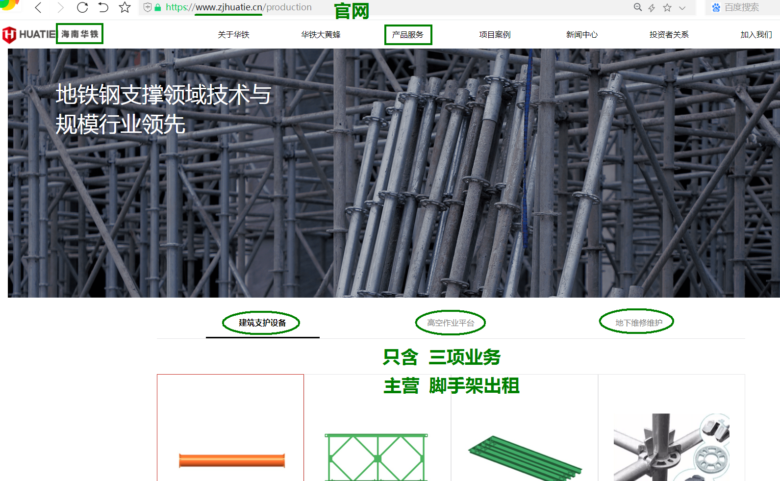 查下了华铁官网--产品与服务,主营是脚手架! 没听错,自己查:主营是脚手架!