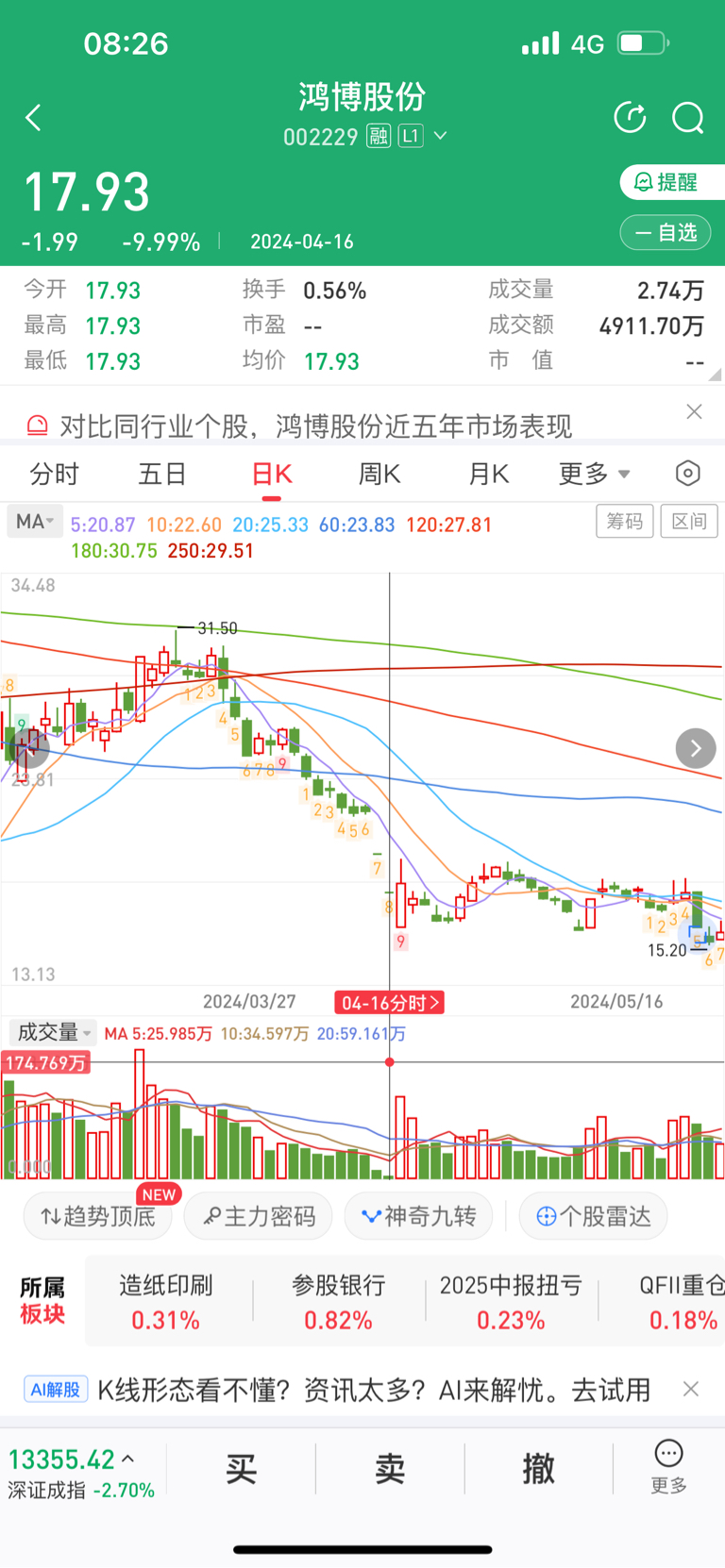 鸿博黑天鹅事件比这个华铁可大多了。当时鸿博年年亏损。且处于熊市。华铁是业绩一直增