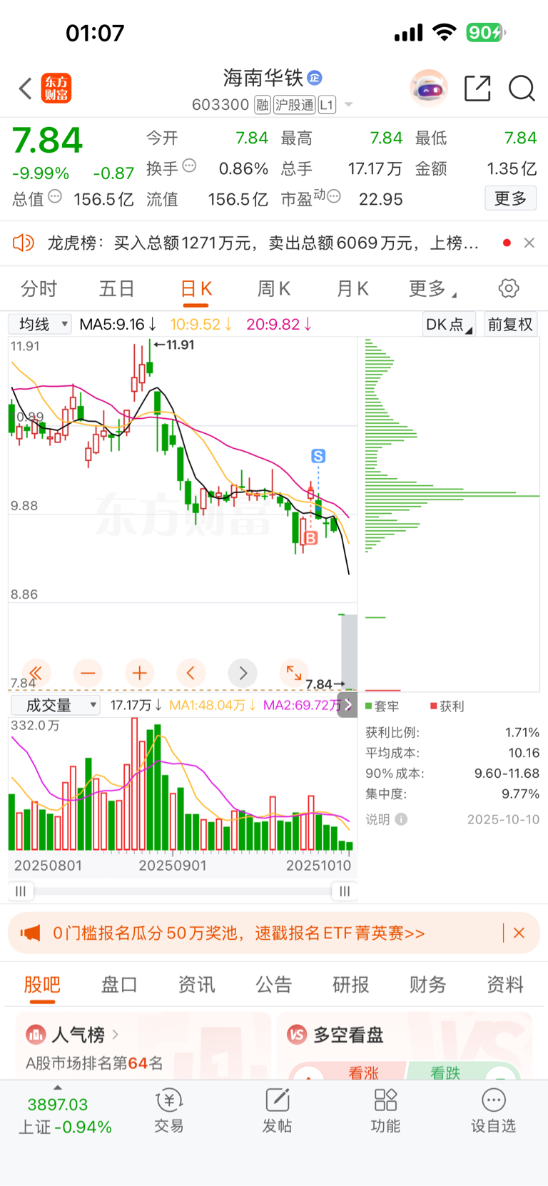 $海南华铁(SH603300)$ 还好割肉了