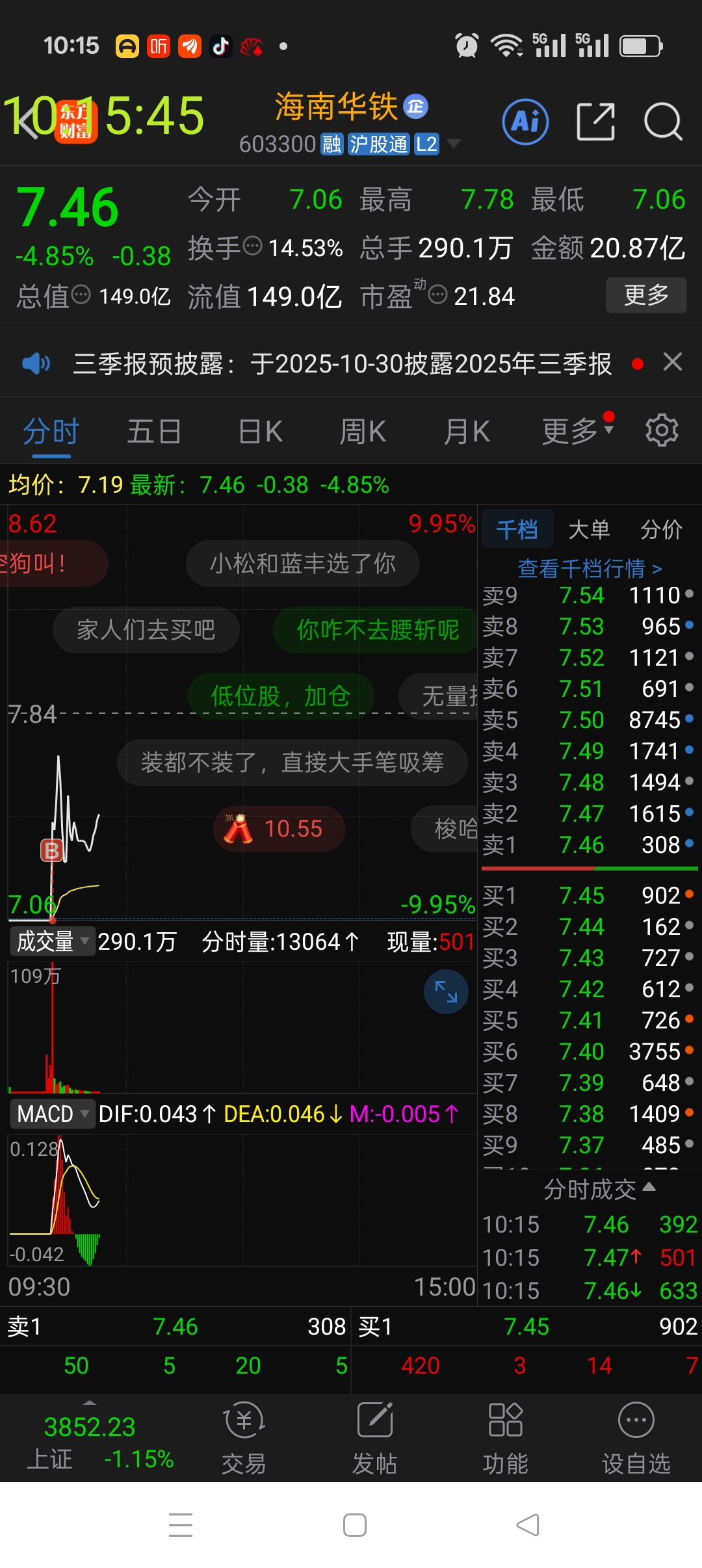 $海南华铁(SH603300)$ 翘板开盘不理想。小仓参与一下吧。要不看着手痒痒。