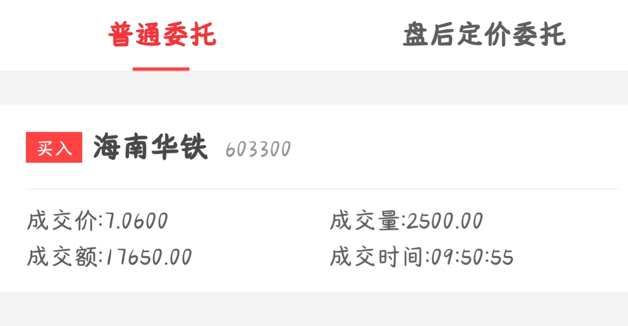 $海南华铁(SH603300)$ 小买试试水,今天起码不会亏