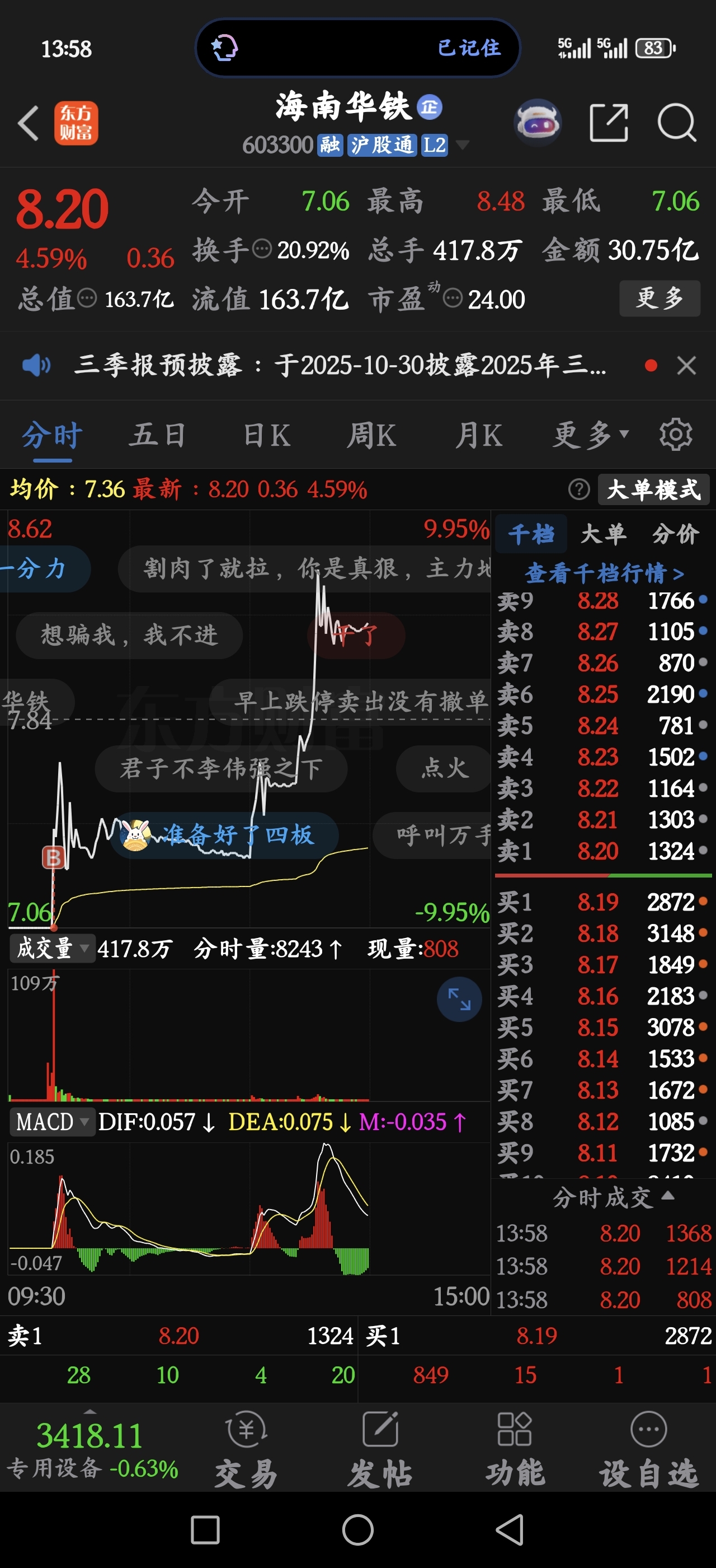 $海南华铁(SH603300)$ 明天能出来吗?