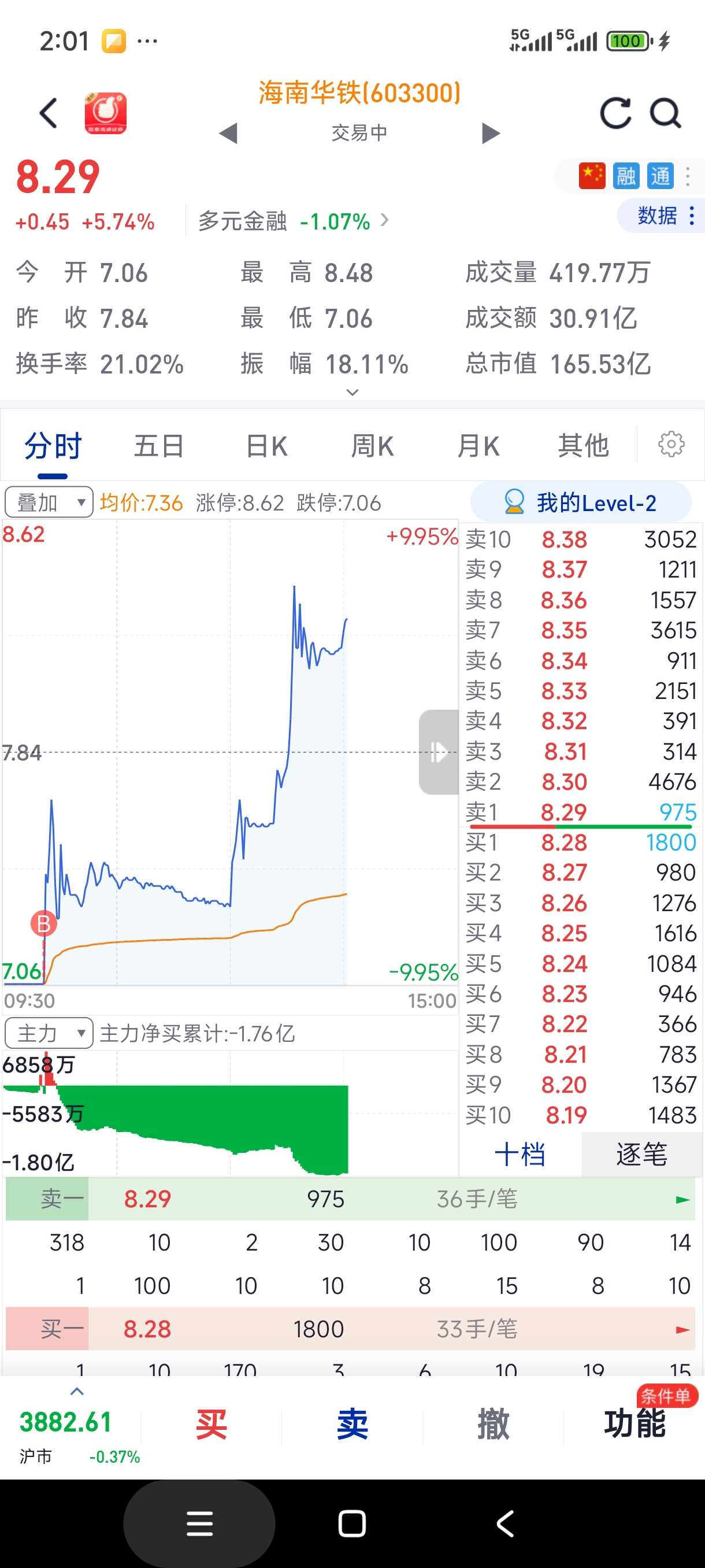 $海南华铁(SH603300)$ 冲起来啊华子,已经好几年没吃地天了