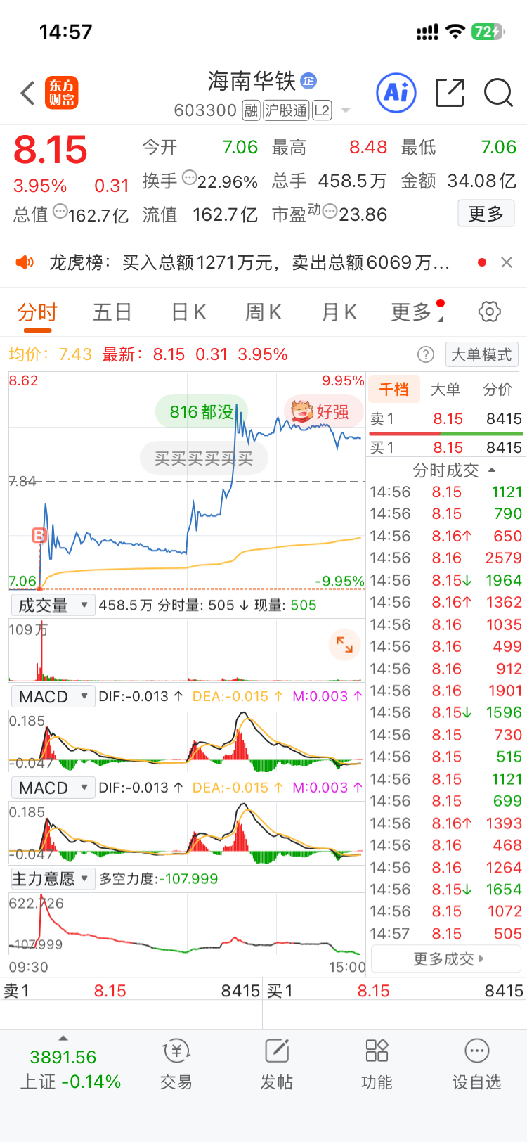 $海南华铁(SH603300)$ 今天15个点,明天挂跌停跑路咯