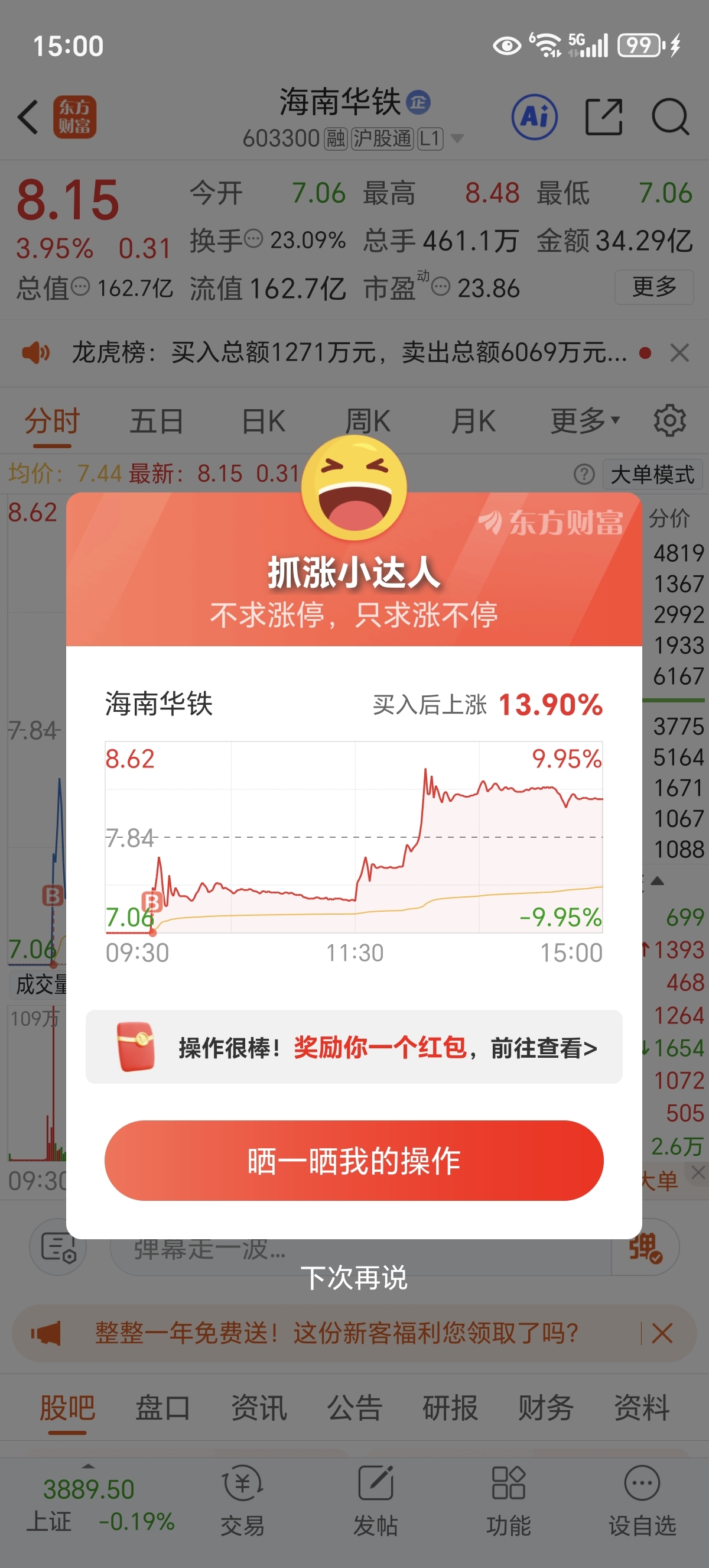 $海南华铁(SH603300)$ 今天管今天 明天管明天咯