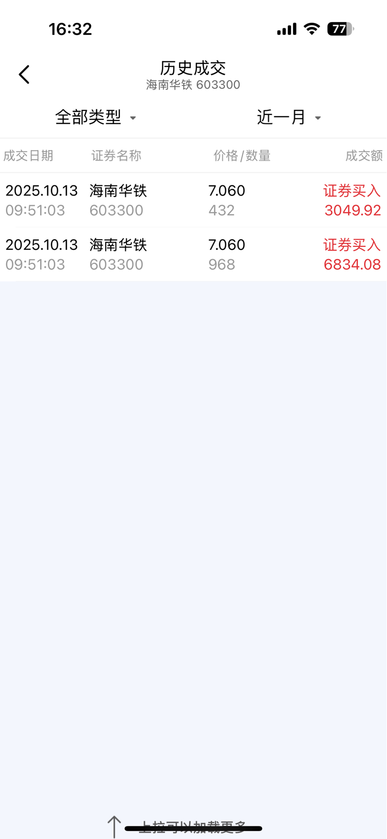 $海南华铁(SH603300)$ 可惜没舍得卖新股,早上账户里还有1万额度、看到有大单在吃货,就进了小点点。小赚15个点,可惜全仓在新股+14%个点都没跑、尾盘又下去了