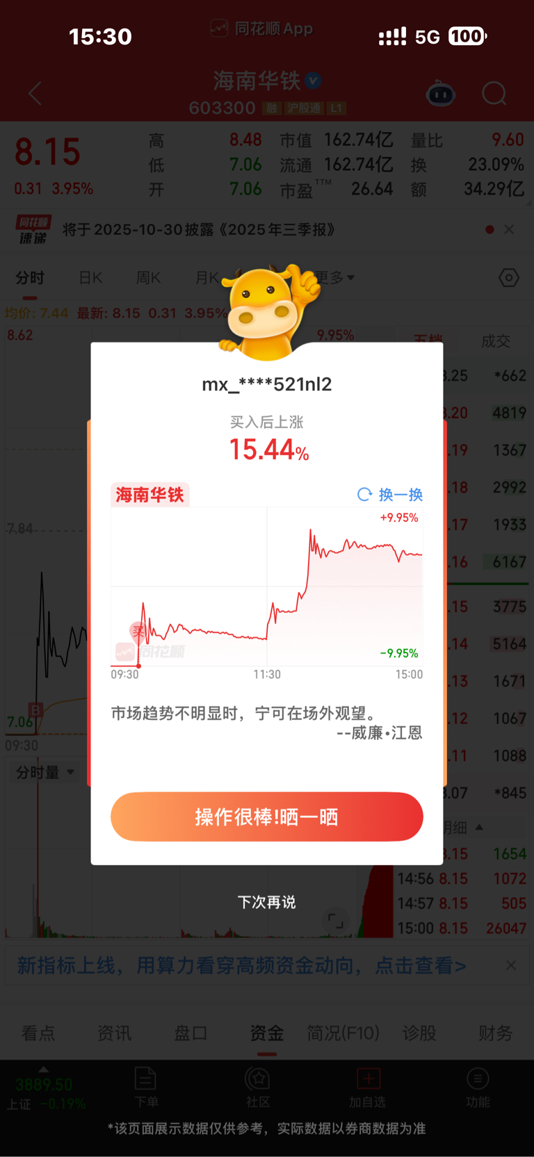 明天不知道能不能保住利润