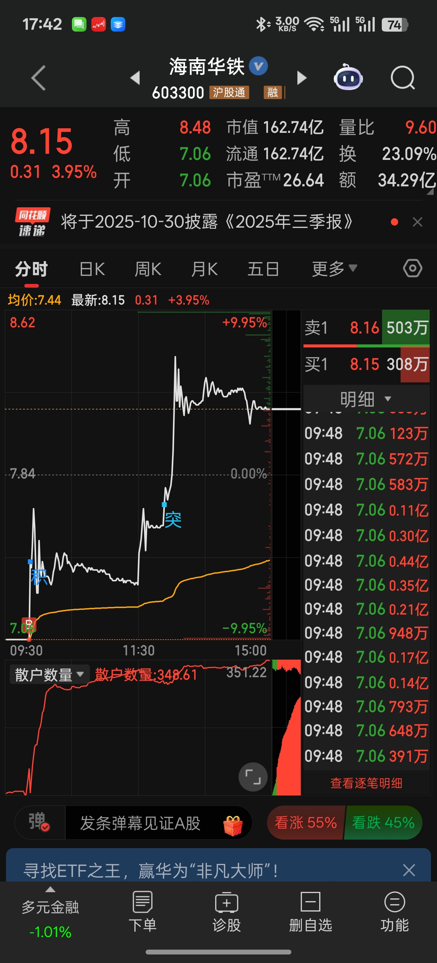 $海南华铁(SH603300)$
