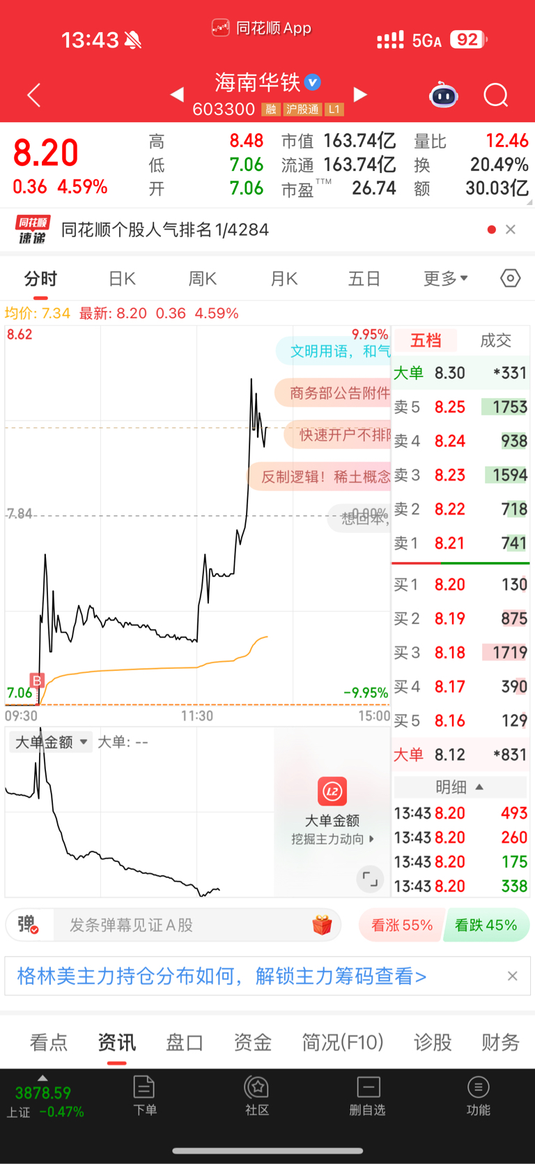 $海南华铁(SH603300)$