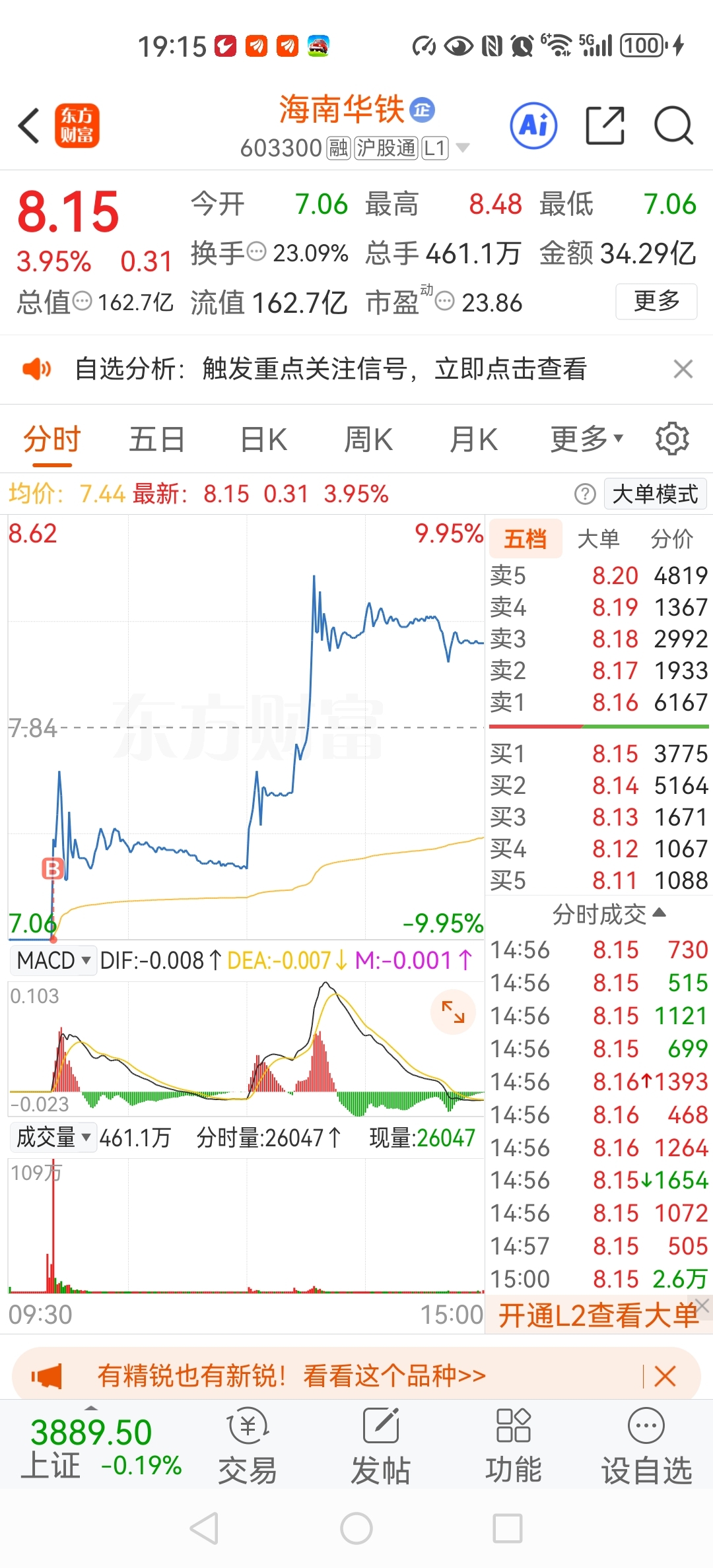 $海南华铁(SH603300)$ 今天的跌停板就是我翘开的