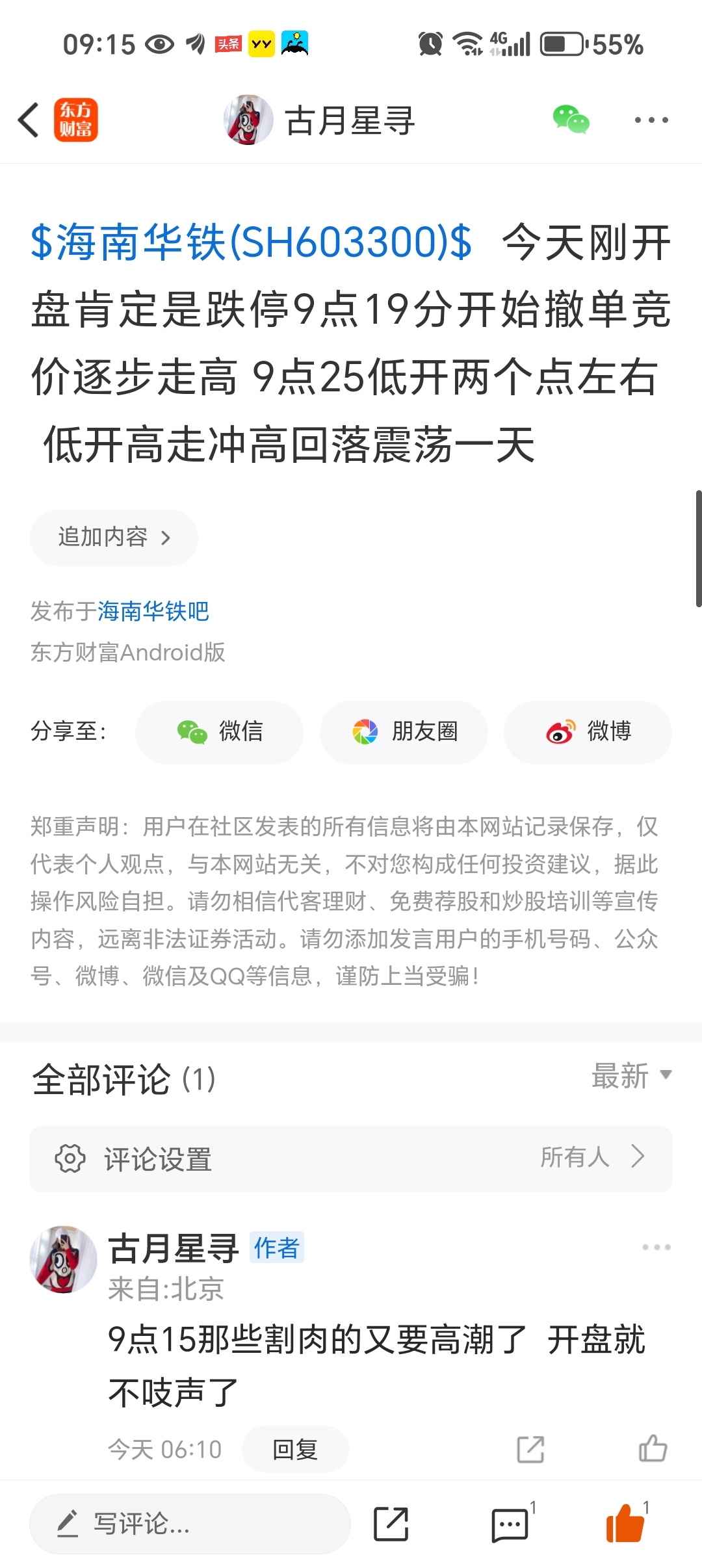 温馨提示: 1.根据《证券法》规定,禁止编造、传播虚假信息或者误导性信息,扰乱证券市场;2.用户在本社区发表的所有资料、言论等仅代表个人观点,与本网站立场无关,不对您构成任何投资建议。用户应基于自己的独立判断,自行决定证券投资并承担相应风险。《东方财富社区管理规定》