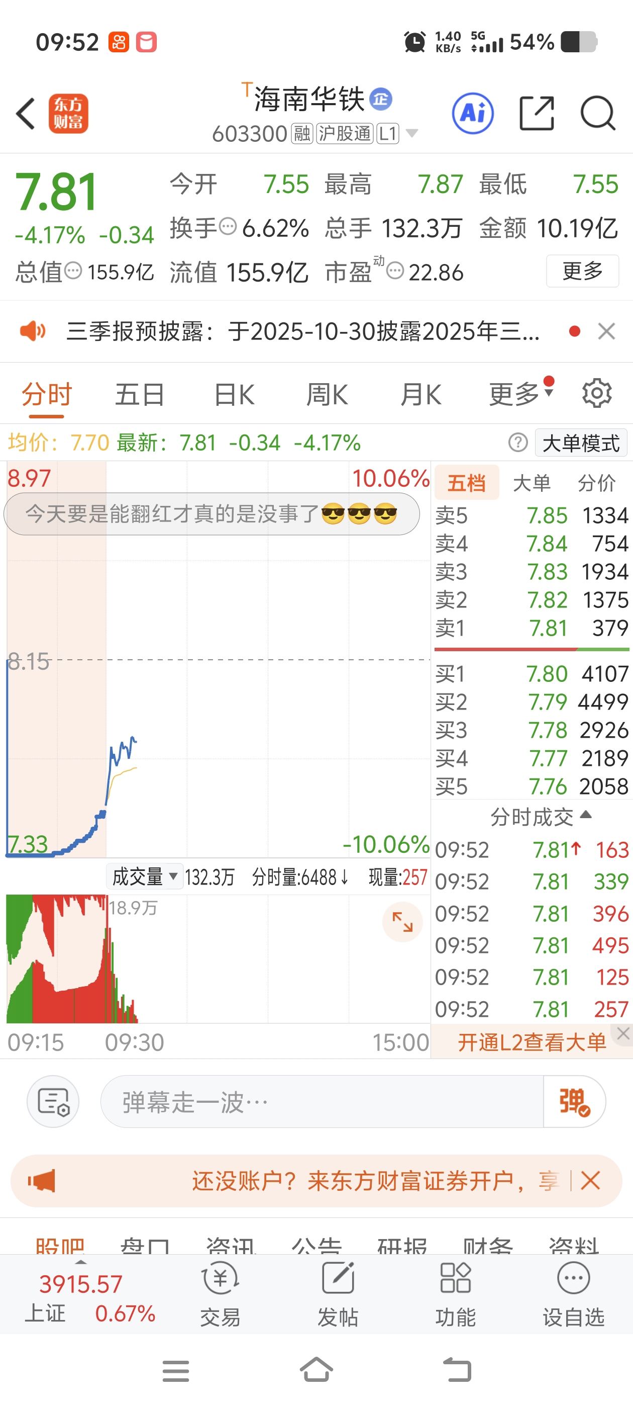 $海南华铁(SH603300)$ 今天要是能翻红才真的是没事了
