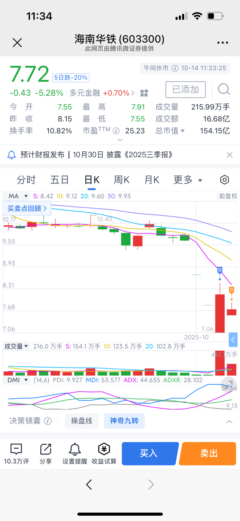 $海南华铁(SH603300)$ 好股啊!昨天地板上7.06进的,今天7.88果断清仓,套利近12个点,虽然没有在最高点清仓但是也知足了,祝车上留下的兄弟发大财!有机会我还会回来的。