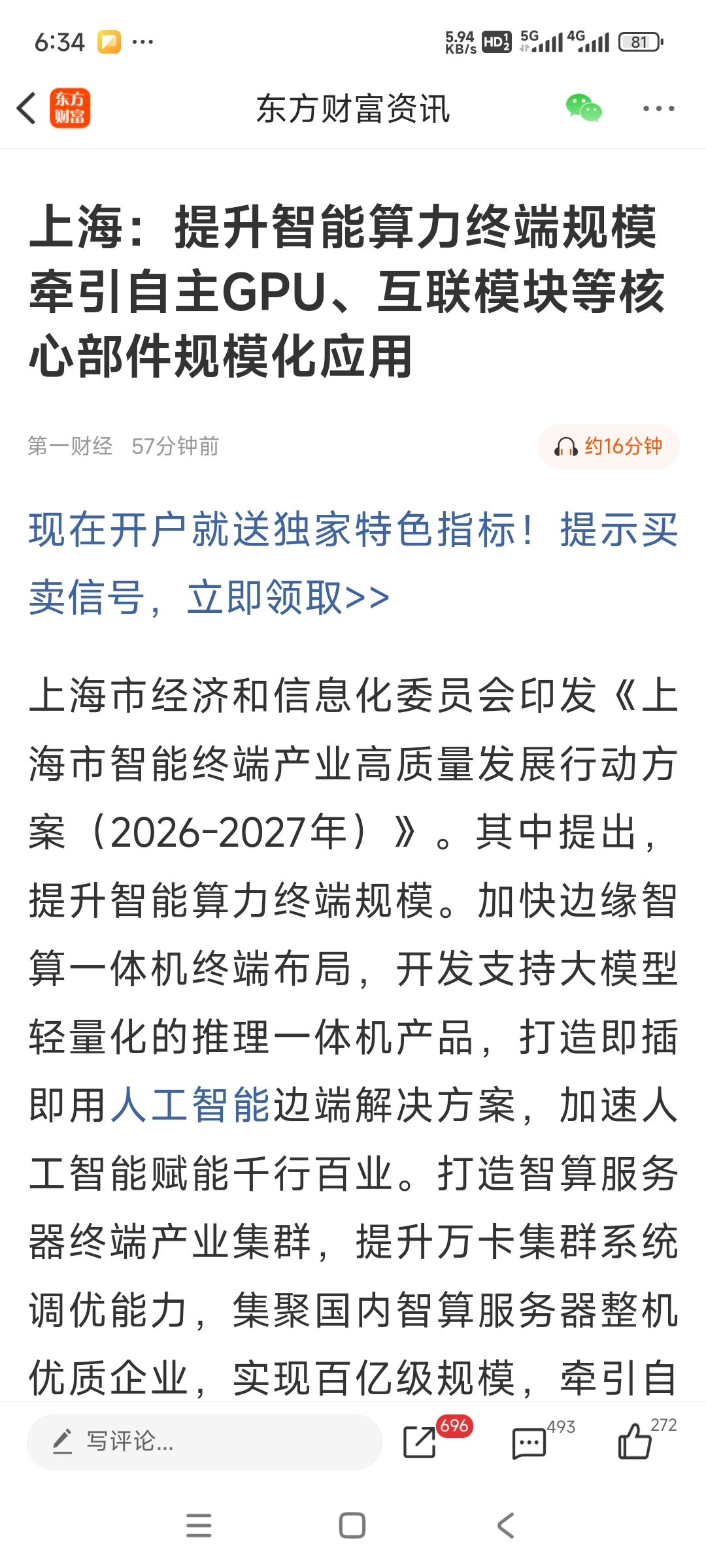 今晚要是来个增持公告就好了,加上算力出了个利好,那么明天你就是市场最靓的仔!