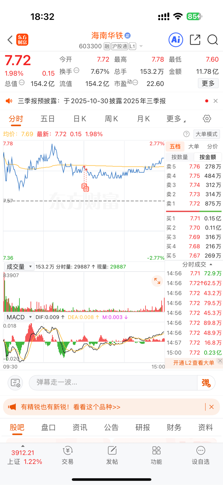 $海南华铁(SH603300)$ 上车了,股东们,明天涨停,大家吃板鸭