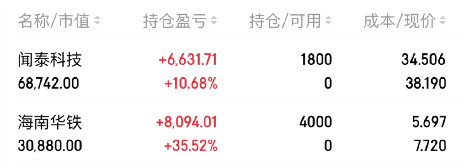 $海南华铁(SH603300)$ 海南华铁很难大涨了,涨不了多少?海南华铁反弹多多少少还是会有的,但远不如闻泰科技,没有增持,闻泰科技一定比海南华铁好多了,见证一下。2只我都有