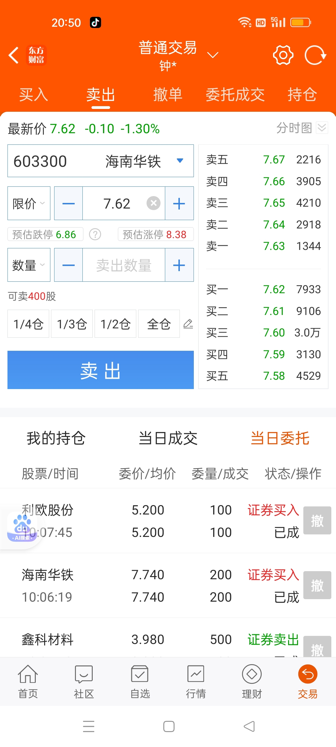 $海南华铁(SH603300)$ 拿着不卖下跌五个点再加仓