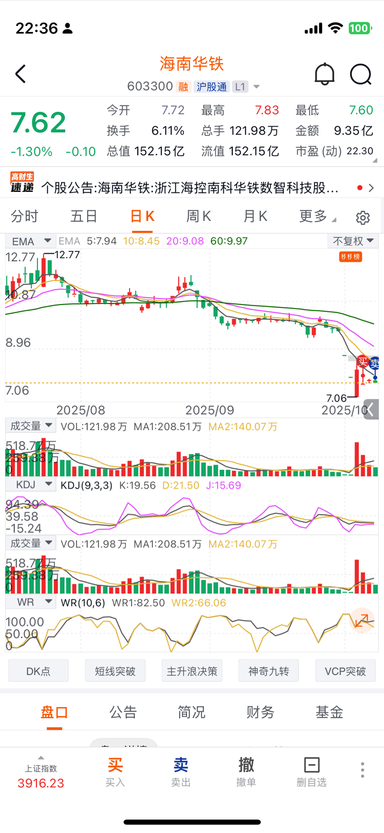 $海南华铁(SH603300)$ 命真好,亏 70 块今天清仓了