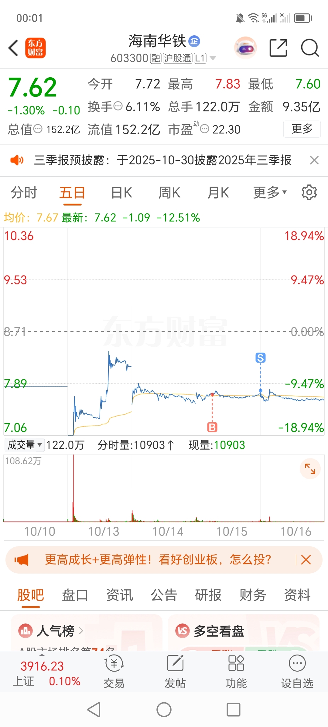 $海南华铁(SH603300)$ 昨天7.72全仓买的,早上7.77卖的,我的小心脏砰砰的
