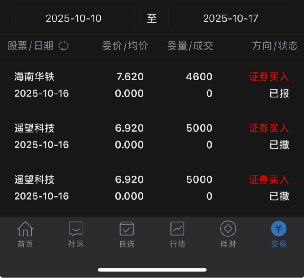 $海南华铁(SH603300)$ 一身冷汗,幸亏没成交啊,要不就一面连吃了