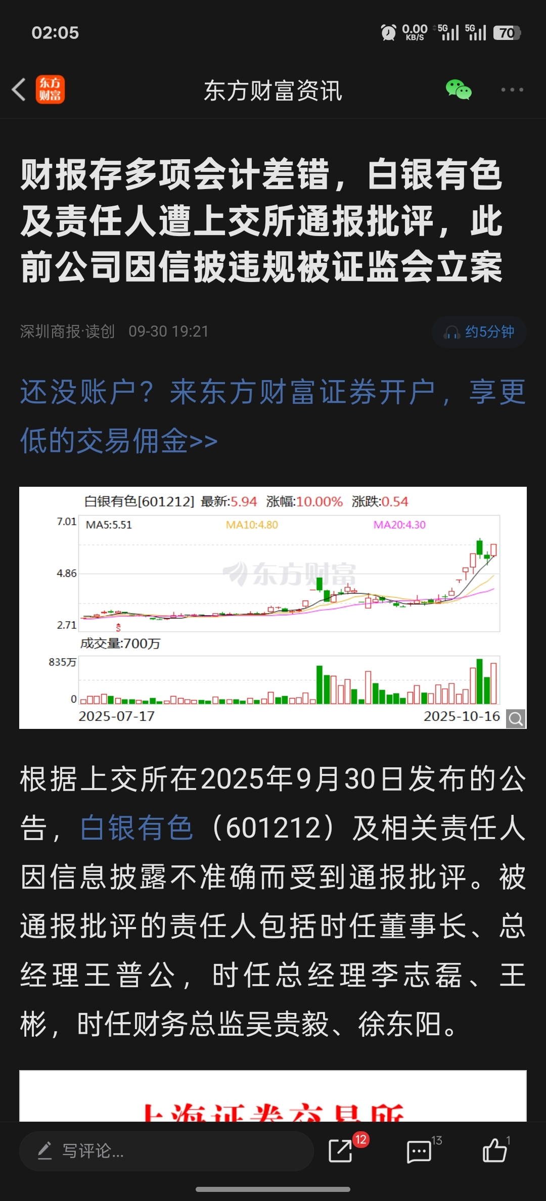白银有色是财报问题,现在都涨停板板,财报的信息披露违规违法才通报批评,海南华铁已