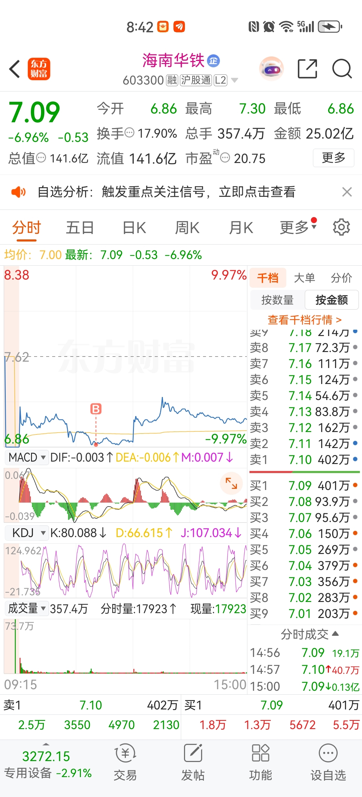 赚了三个点,准备在周一的高点卖出,少女不立危墙之下看着上方密集的套牢筹码,没三五