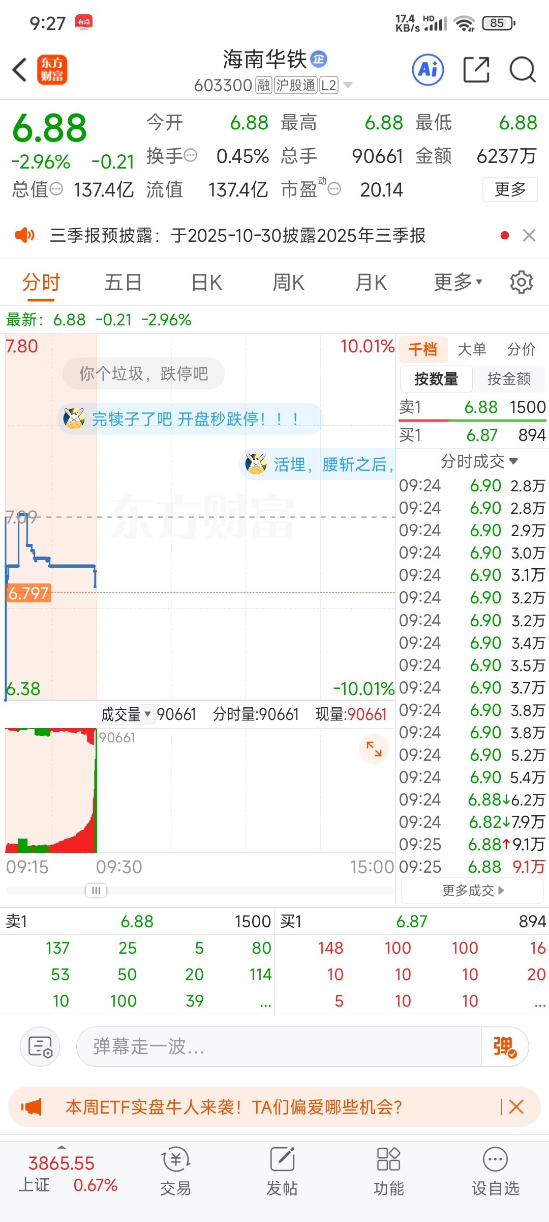 马上要跌破我的成本线了。