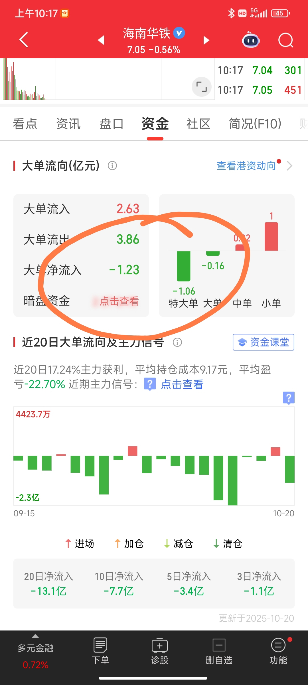 $海南华铁(SH603300)$ 活捉主力出货1.3亿