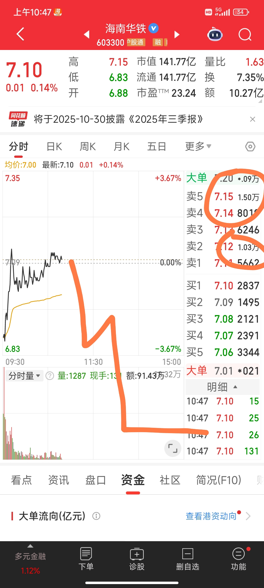 我预测下接下来的走势。。快速往下跌。依据是。上面有几万手压单,主力流出几个亿。。