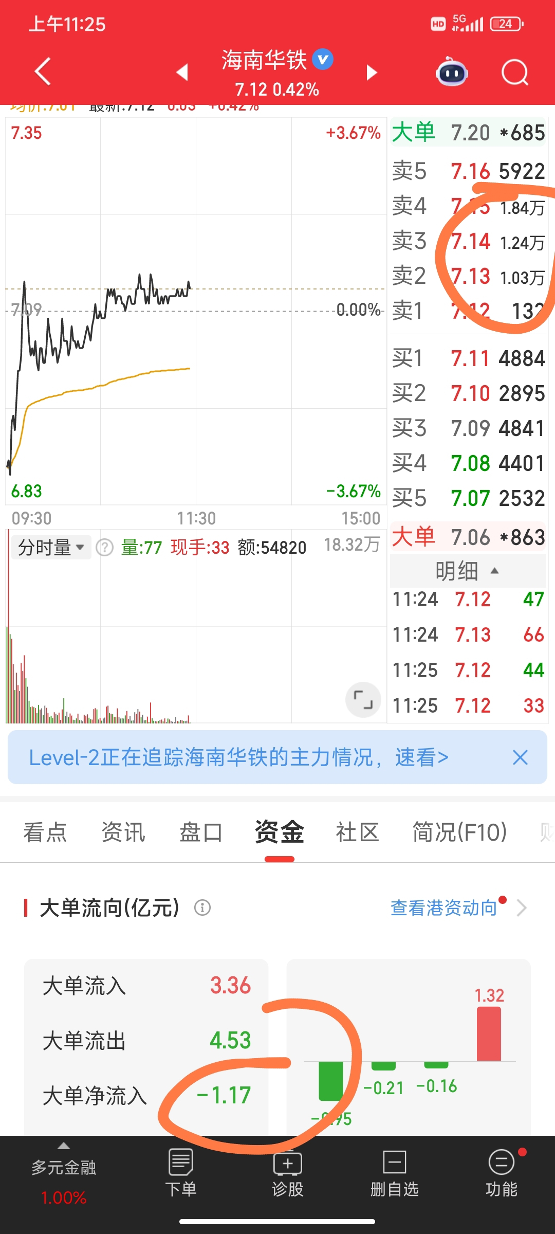 $海南华铁(SH603300)$ 活捉主力出逃1.17亿