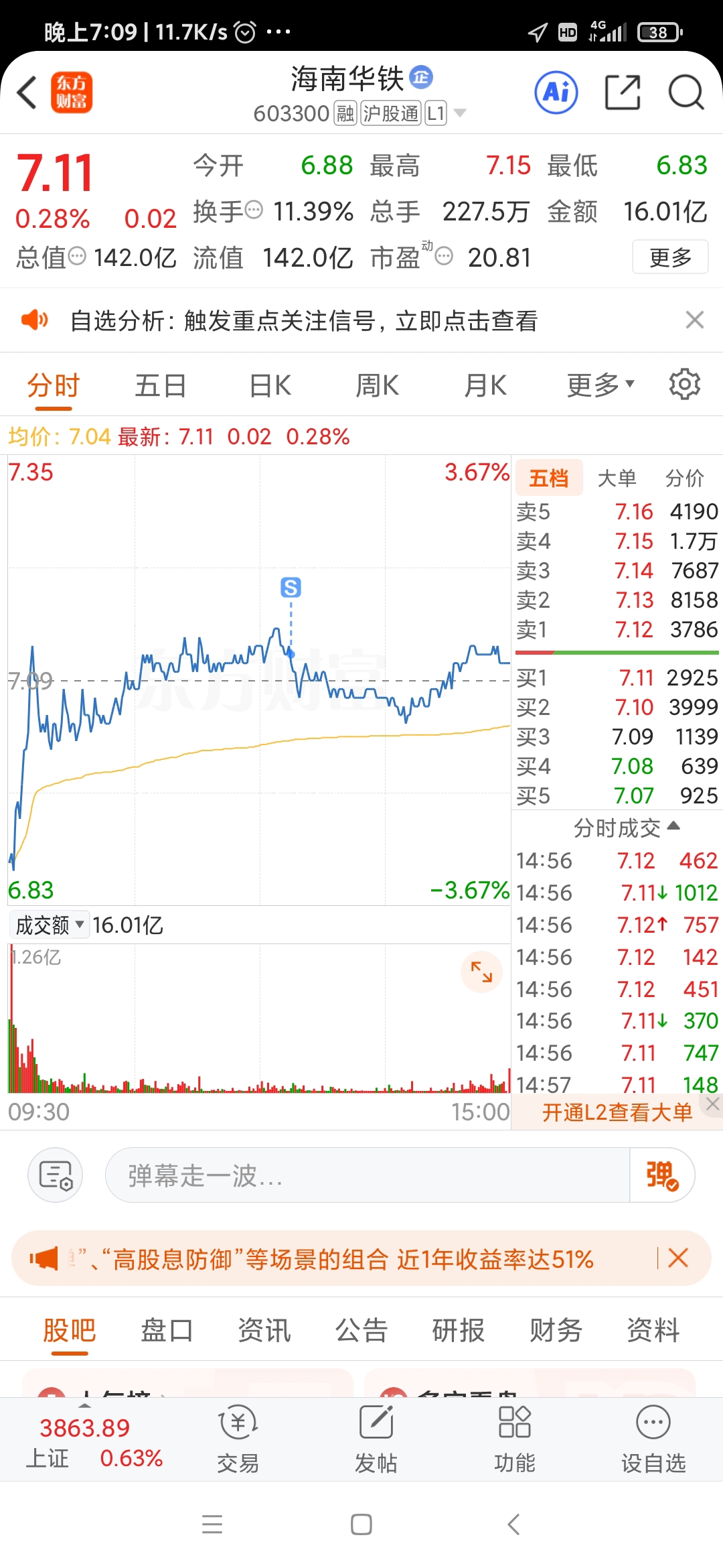 $海南华铁(SH603300)$ 还以为今天能吃到大肉,)想不到只有虫子肉,撤了。