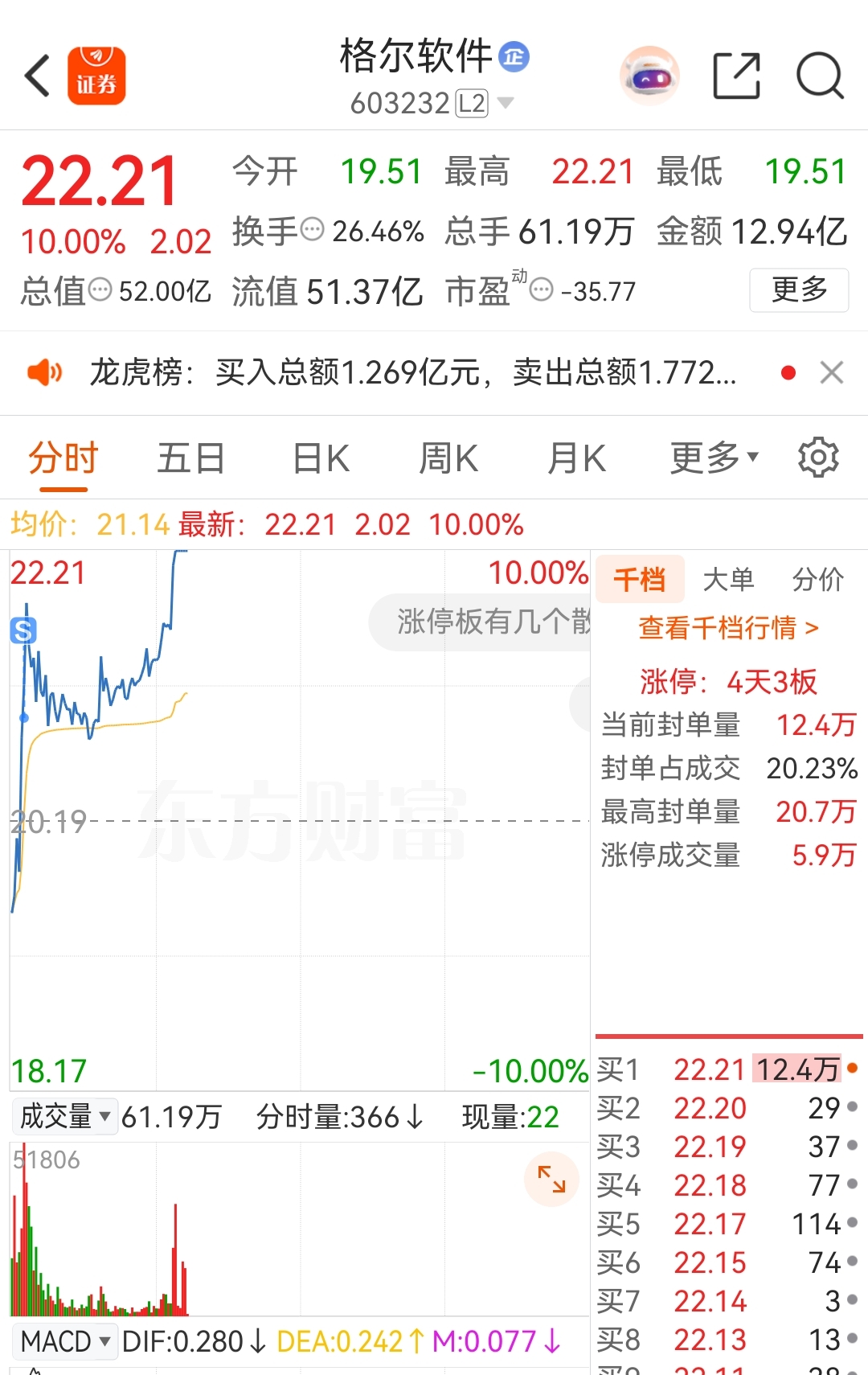 $格尔软件(SH603232)$格局小了,今天卖飞了,结果涨停了,下次一定要格局!
