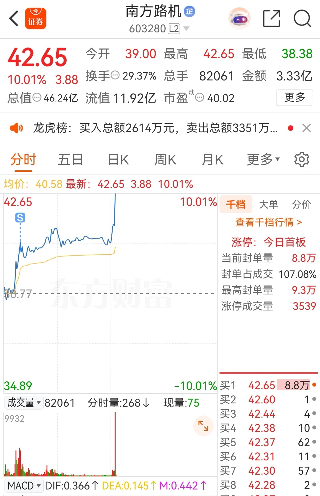 $南方路机(SH603280)$水平太差了,又卖飞了,看来次日不涨停,后面还是有涨停的机会的;